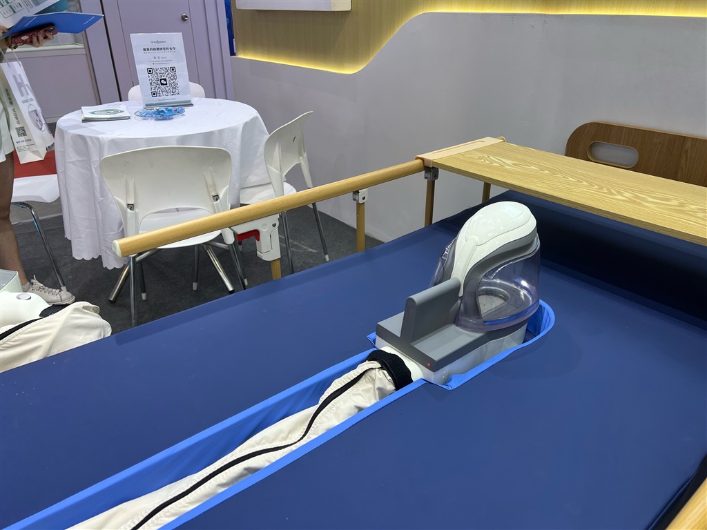 不仅有智能洗浴机器人,现场还有多功能护理轮椅,同样为行动不便人士所设计。据现场工作人员介绍,这是一款集人-车-衣-椅-床-浴缸于一体的“轮椅变形金刚”,获得多项发明和实用新型专利。